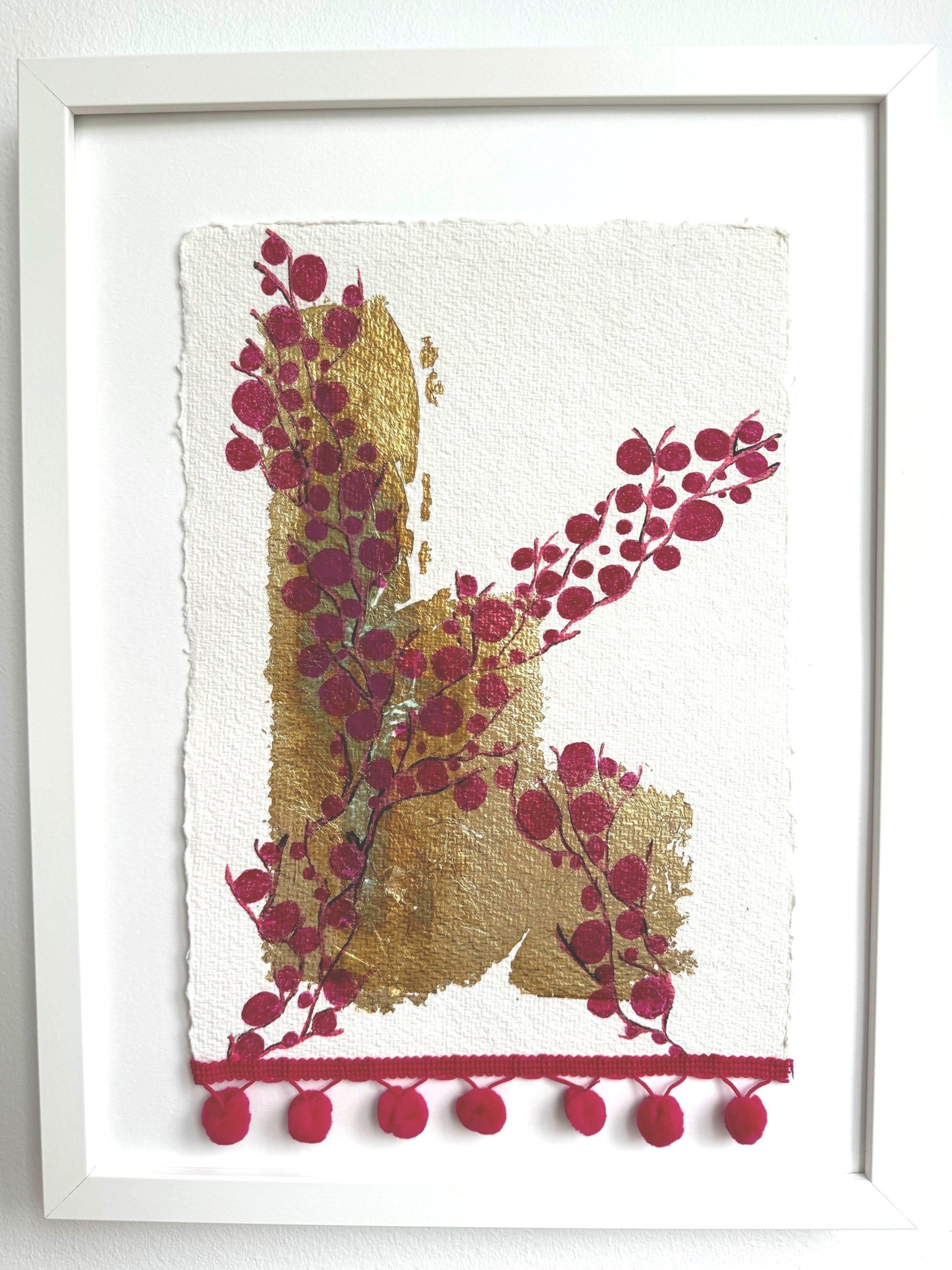 ink, gold leaf, cotton trim on paper, 2024